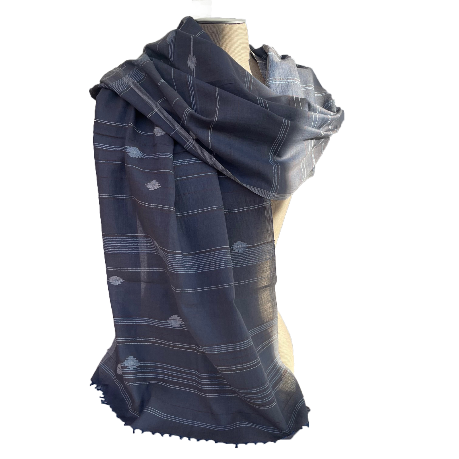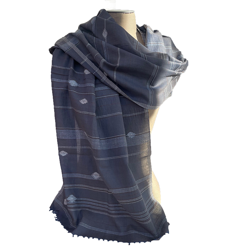 Deze Jamdani shawls zijn van een zachte katoen. Het patroon wordt tijdens het weven met de hand ingelegd.