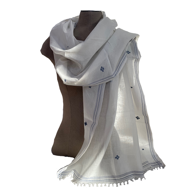 Deze Jamdani shawls zijn van een zachte katoen. Het patroon wordt tijdens het weven met de hand ingelegd.